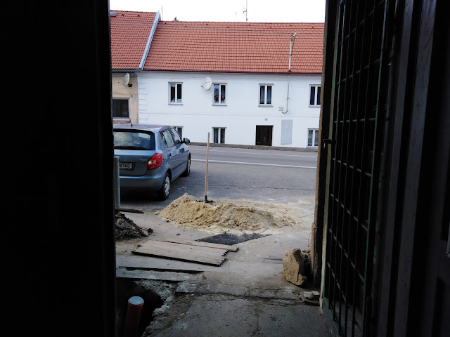 Měli přijet kopáči na likvidaci suti. Přijedou zítra. Takže jsem nosila/vozila suť sama. Když mě to přestalo bavit(což bylo celkem záhy), pokračovala jsem na zarovnávání vedlezahrádky. Na zahradě bylo mokro, protože mlha se srážela do droboučkého mrholení. Takže žádné Koneckřoví.